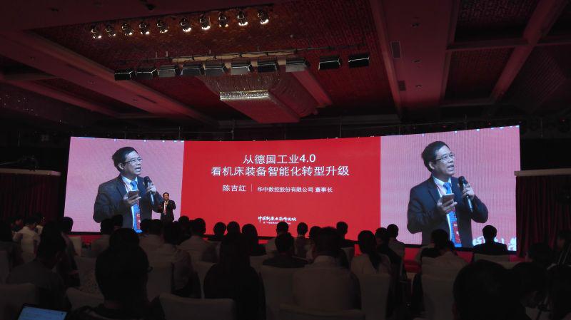 武漢華中數控股份有限公司董事長陳吉紅教授作題為《從德國工業4.0看機床裝備智能化轉型升級》的主題演講。陳吉紅董事長回顧了近年來機床設備智能化轉型升級的歷史進程,對智能制造行業的歷史、現狀、未來走勢進行了精辟的分析和預測。同時,陳總的報告簡明扼要、生動、形象,獲得了與會代表的好評。會后,湖北衛視、東方衛視還特別采訪了陳吉紅董事長。
