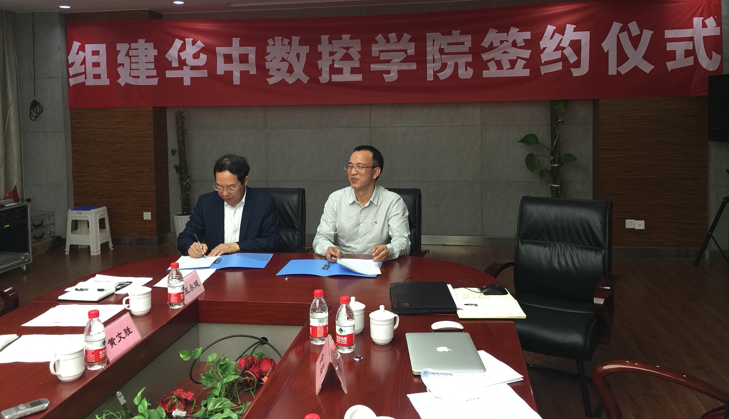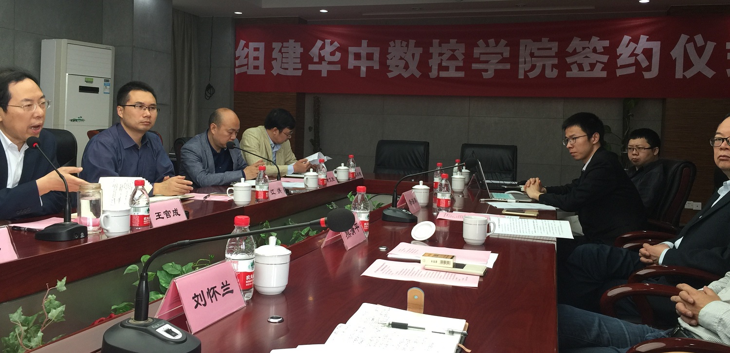 2016年4月28日,重慶工業(yè)職業(yè)技術(shù)學(xué)院召開“重慶工業(yè)職業(yè)技術(shù)學(xué)院與武漢華中數(shù)控股份有限公司聯(lián)合組建華中數(shù)控學(xué)院會(huì)議”,參加本次會(huì)議的有:重慶工業(yè)職業(yè)技術(shù)學(xué)院王管成書記、江洪副校長(zhǎng)、周進(jìn)民處長(zhǎng)以及武漢華中數(shù)控股份有限公司熊清平副總裁、劉懷蘭總裁助理、重慶華數(shù)機(jī)器人有限公司常務(wù)副總楊海濱等。