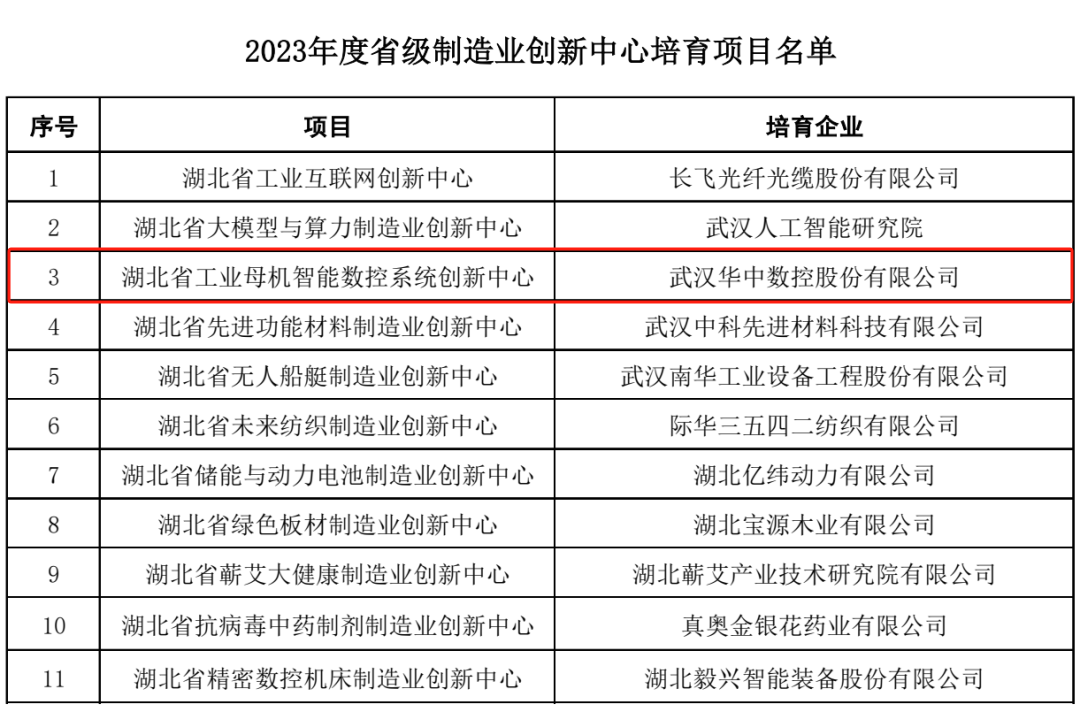 湖北新一批省級制造業(yè)創(chuàng)新中心培育名單公布,華中數(shù)控在列