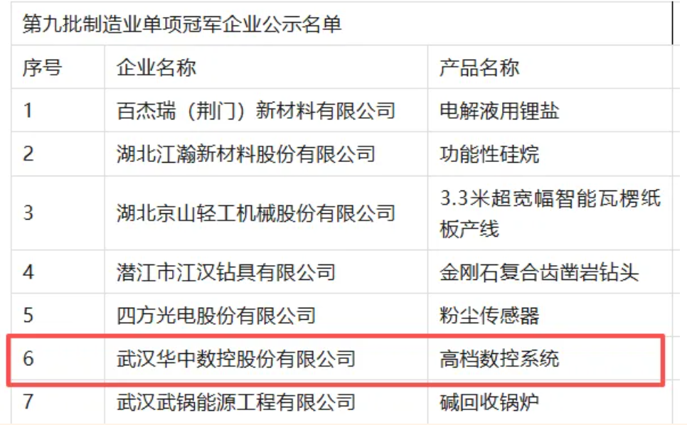 榮譽+1!華中數控獲評國家級制造業單項冠軍企業